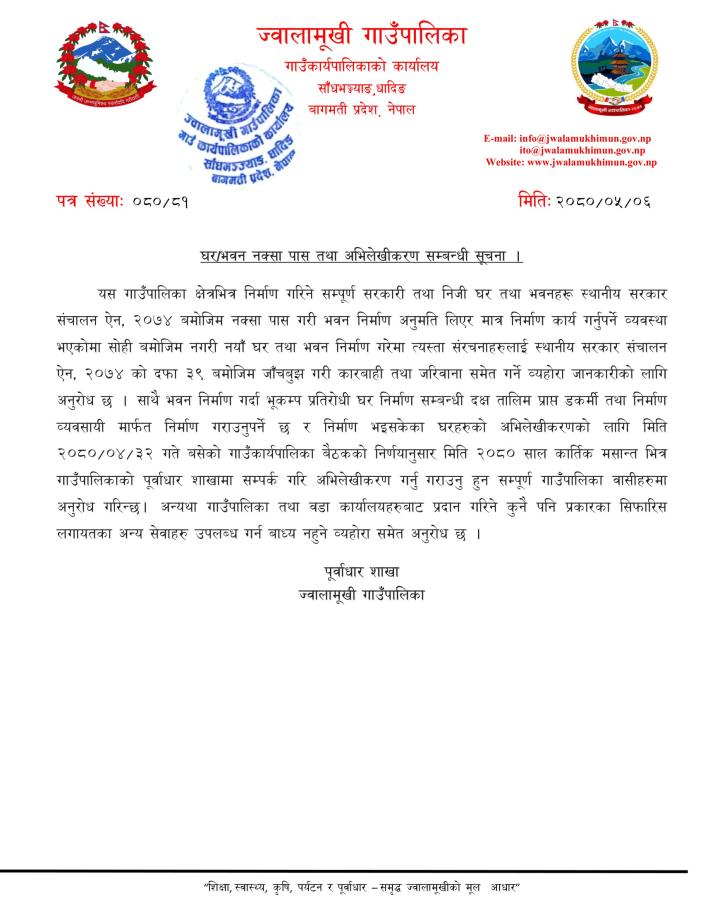 घर/भवन नक्सापास तथा अभिलेखीकरण सम्वन्धी सूचना